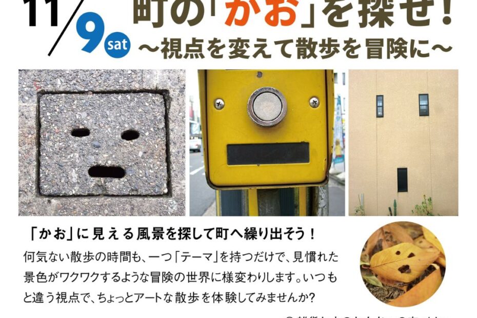 11/9『町の「かお」を探せ! ~視点を変えて散歩を冒険に~』by chirp-ashida2024年10月14日『町の「かお」を探せ! ~視点を変えて散歩を冒険に続きを読む »11/9『町の「かお」を探せ! ~視点を変えて散歩を冒険に~』