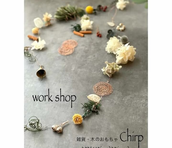 1/19, 20『0.2mmのワイヤーで繋ぐガーランドワークショップ』by chirp-ashida2025年1月4日0.2mmのワイヤーで繋ぐガーランドワークショップ続きを読む »1/19, 20『0.2mmのワイヤーで繋ぐガーランドワークショップ』